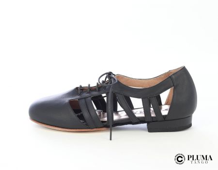 Il modello Recoleta- realizzata in stampa pallini neri è particolarmente adatto ha chi ha una pianta larga o chi ha problemi di alluce valgo. Presenta una allacciatura con la doppia fibbia e il doppio cinturino; vi consigliamo di allacciare per primo la fibbia "no logo" alla caviglia. Suola in cuoio spazzolato e ammorbidito, molto flessibile, resistente e...