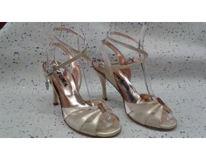Art.  MIAMI  4  TA  TWINS  in raso lux  giallo / oro  4  +  perlato bronzo  tacco  90  tutti i modelli  PLUMA si possono realizzare in tutte le altezze ;  5 -6 -7 -8 -9 -10