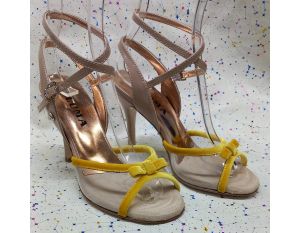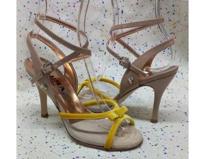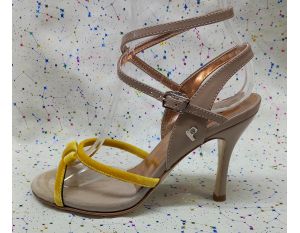 ART.  NIZZA G.A.4  in  trasparente +  velluto  giallo +  vernice tortora  tacco 90
