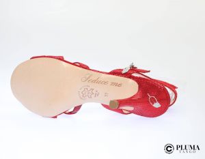 Il modello Recoleta-, realizzata in stampa pallini rossi  è particolarmente adatto ha chi ha una pianta larga o chi ha problemi di alluce valgo. Presenta una allacciatura con la doppia fibbia e il doppio cinturino; vi consigliamo di allacciare per primo la fibbia "no logo" alla caviglia. Suola in cuoio spazzolato e ammorbidito, molto flessibile, resistente e con un buon supporto. Da nuova la suola è protetta da una pellicola adesiva trasparente, da togliere prima dell'utilizzo. Realizzata con i migliori materiali italiani. Il modello è molto avvolgente e sensuale. La scarpa ha un eccezionale "balance". Il sottopiede di ogni Pluma è imbottito con "memoryfoam". Design elegante.