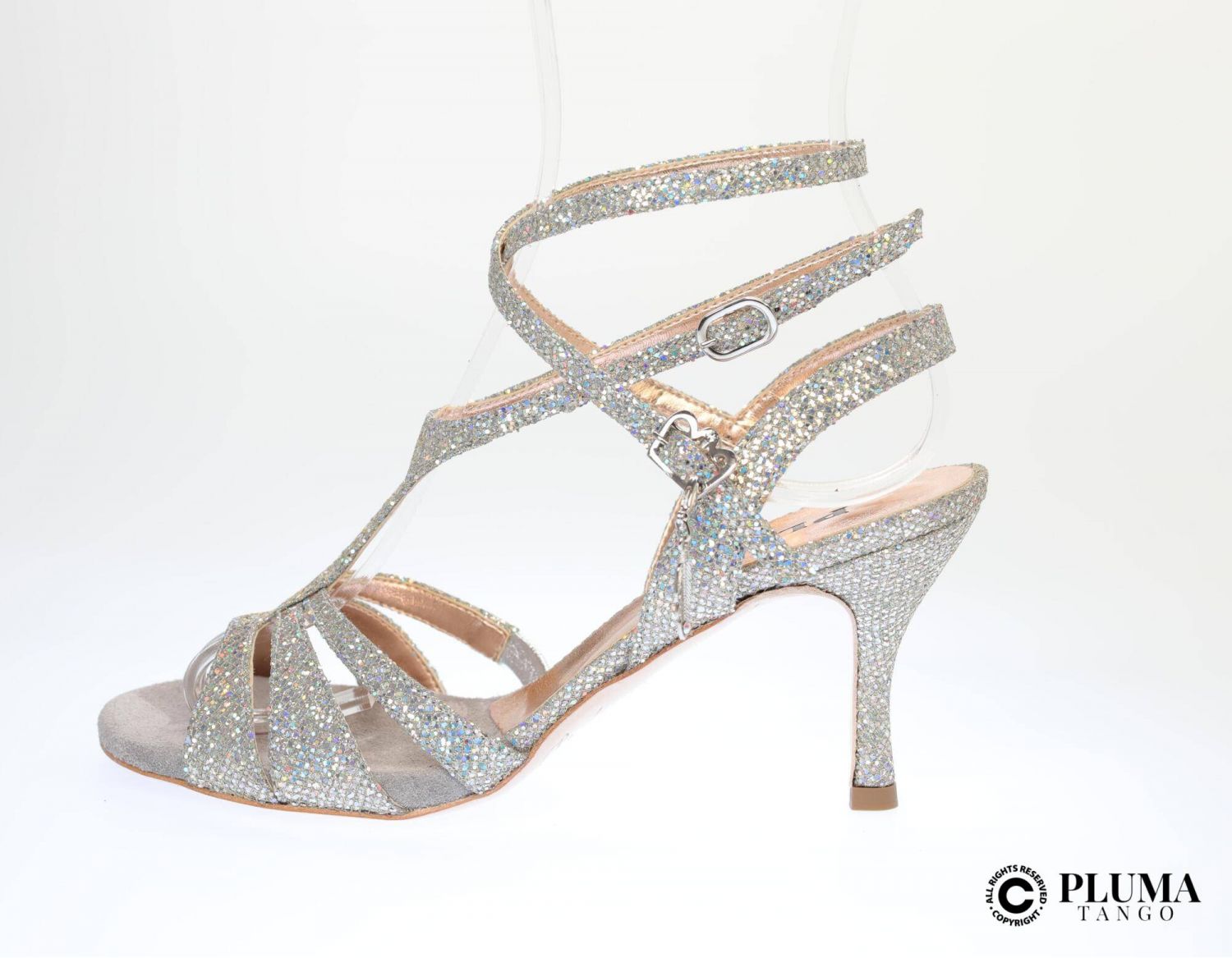 Il modello Recoleta- twins , realizzata in tessuto brillante è particolarmente adatto ha chi ha una pianta larga o chi ha problemi di alluce valgo. Presenta una allacciatura con la doppia fibbia e il doppio cinturino; vi consigliamo di allacciare per primo la fibbia "no logo" alla caviglia. Suola in cuoio spazzolato e ammorbidito, molto flessibile, resistente e con un buon supporto. Da nuova la suola è protetta da una pellicola adesiva trasparente, da togliere prima dell'utilizzo. Realizzata con i migliori materiali italiani. Il modello è molto avvolgente e sensuale. La scarpa ha un eccezionale "balance". Il sottopiede di ogni Pluma è imbottito con "memoryfoam". Design elegante.